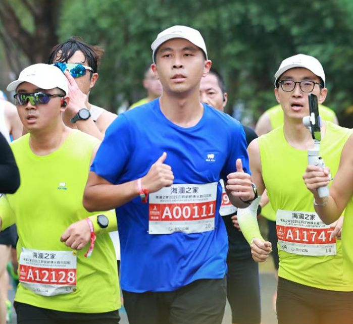在参赛人群中,有一位特殊的跑者,他就是海澜集团董事长周立宸。作为赛事冠名企业的掌舵人,他不仅“出钱”支持这场体育盛会,更“出力”亲自上阵。最终,他以1小时39分的成绩大幅刷新个人最好记录(PB),比去年快了整整10分钟。