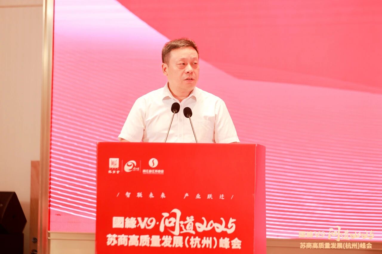 钱塘潮起汇三江,数字云脉通五洲。10月17日,由浙江省江苏商会、江苏省苏商发展促进会主办,江苏今世缘酒业股份有限公司联合主办的“国缘V9·问道2025苏商高质量发展(杭州)峰会”在杭州临平成功举办。