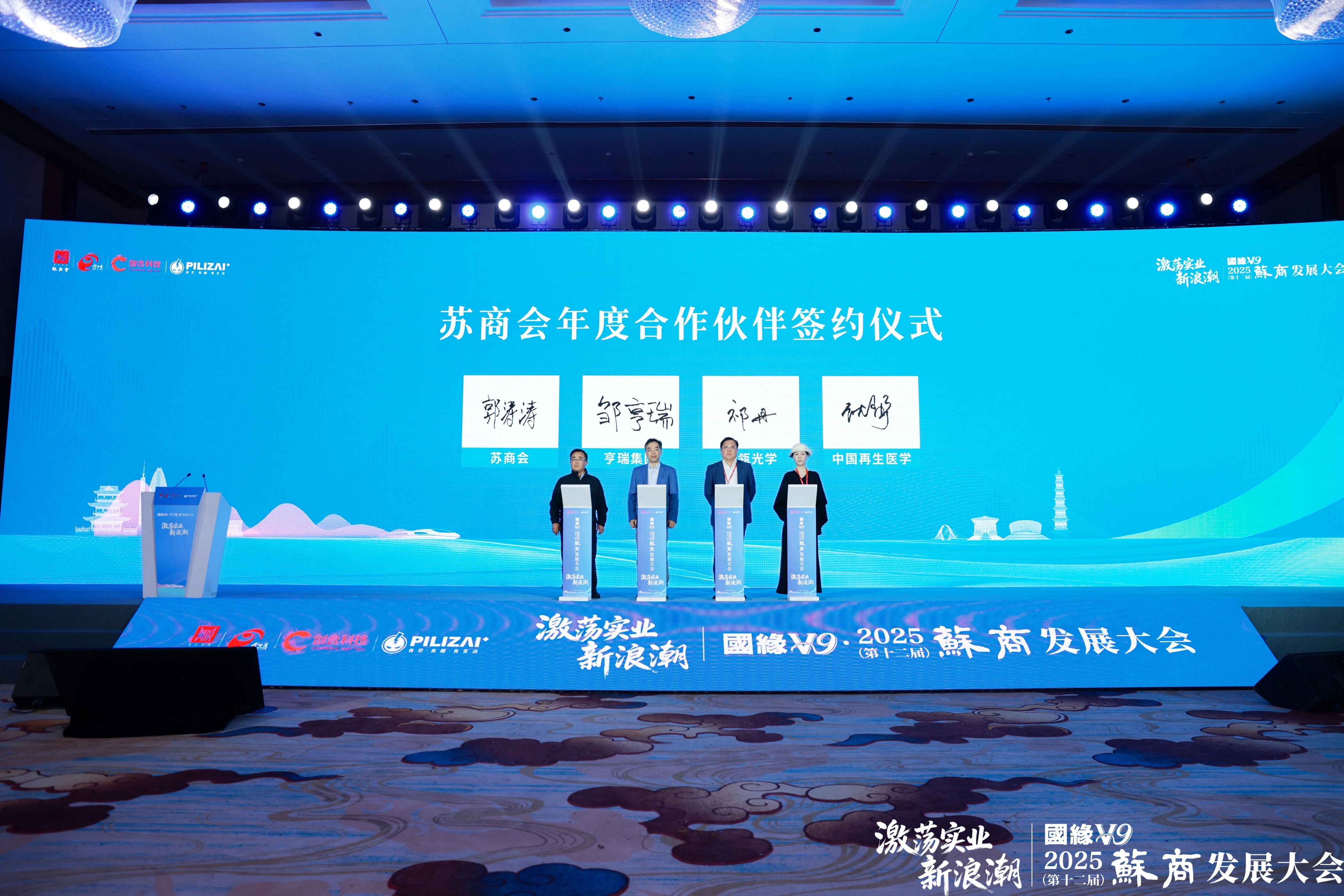 此外,大会上还举行了苏商会年度合作伙伴签约仪式,苏商会与亨瑞集团、辰瓴光学、中国再生医学签署战略合作协议,未来将携手并进,共创美好未来。