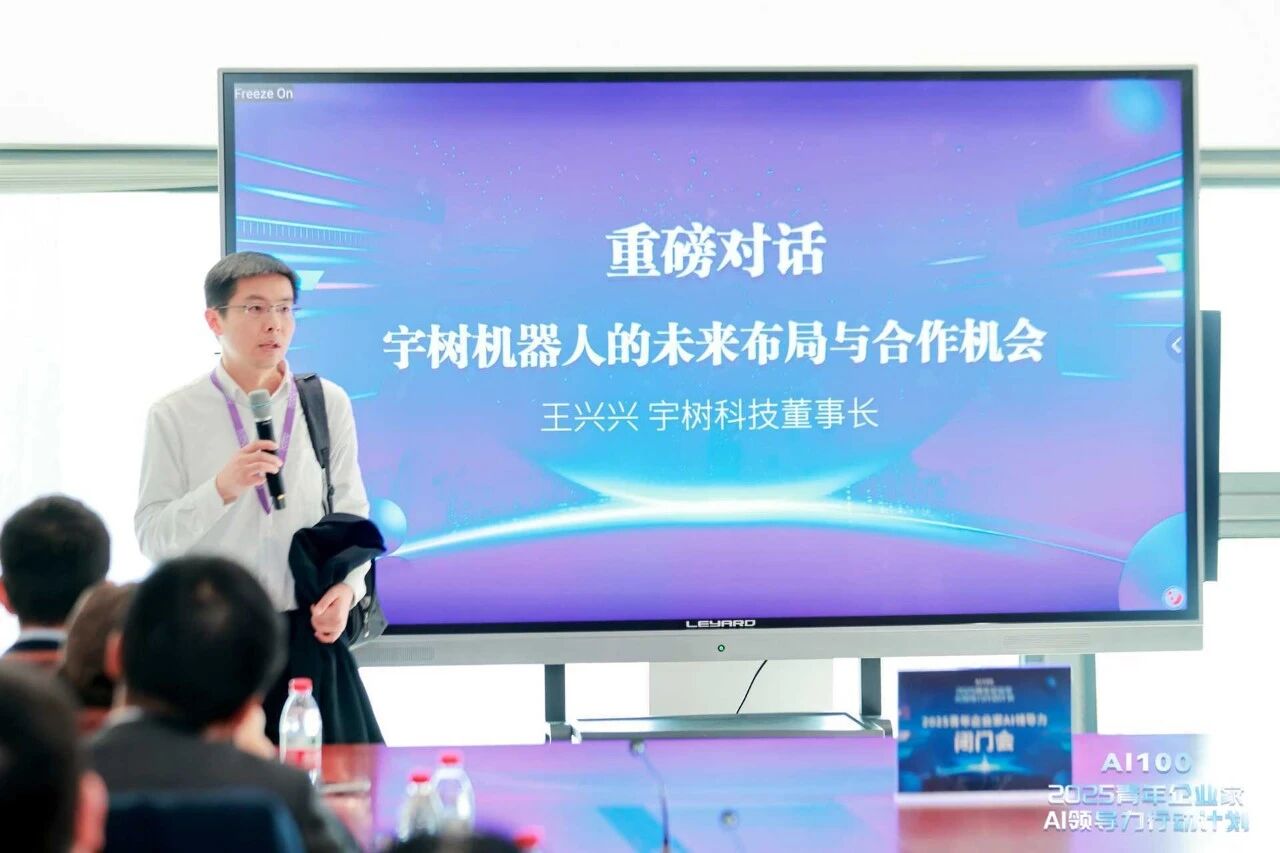 当天下午,青年企业家们参加了AI领导力闭门会,与两位央视年度AI人物——宇树科技创始人王兴兴、第四范式联合创始人、首席科学家陈雨强,以及来自九曜智能、昊野科技、瑞鼎精密等三家央视《赢在AI+》获奖企业的主要创始人进行了对话交流。