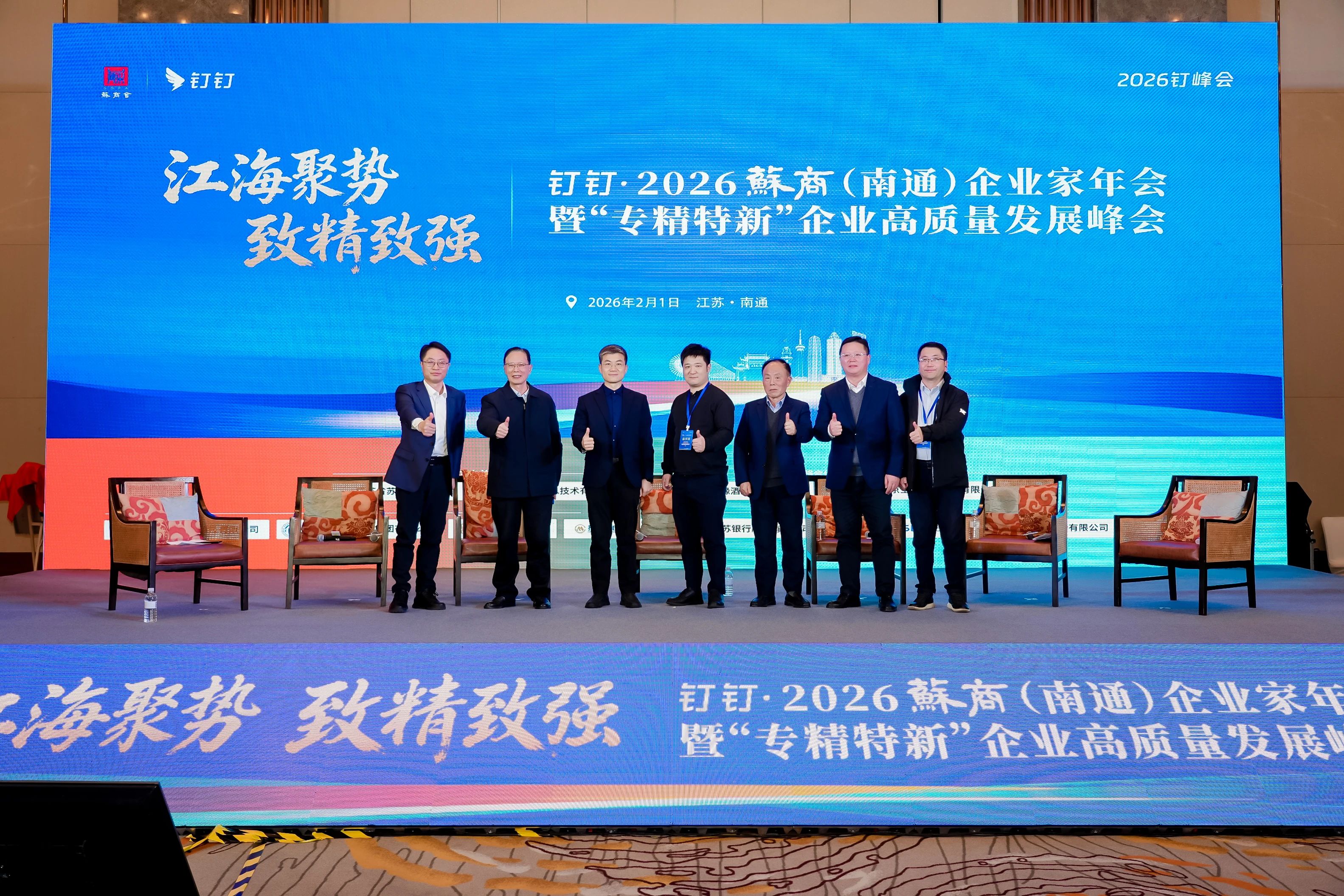 作为长三角北翼的经济中心,南通不仅肩负着区域协同发展的重要使命,更积淀了深厚的制造业根基与“敢为人先”的实业精神。为汇聚本土企业创新合力,2月1日,江苏省苏商发展促进会与钉钉(中国)信息技术有限公司联合举办“钉钉•2026苏商(南通)企业家年会暨‘专精特新’企业高质量发展峰会”。